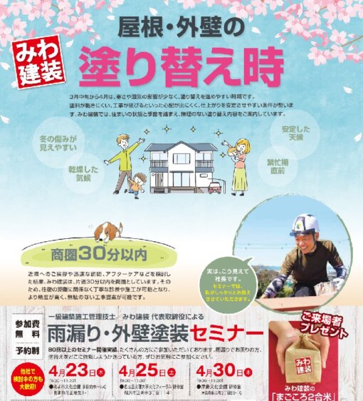 - 3月度塗り替えセミナー〚あま市・津島市・稲沢市で開催〛