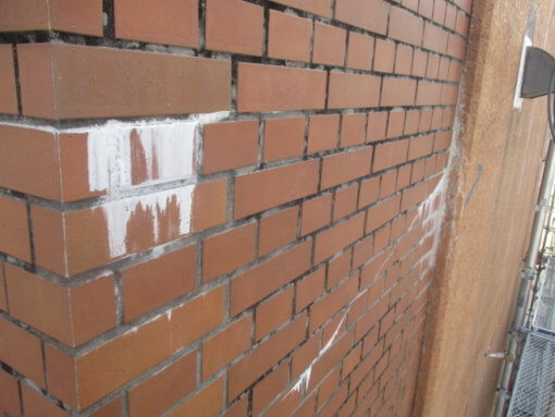 ⑤この後、エフロ除去(白い部分)をし、高圧洗浄をかけてから
