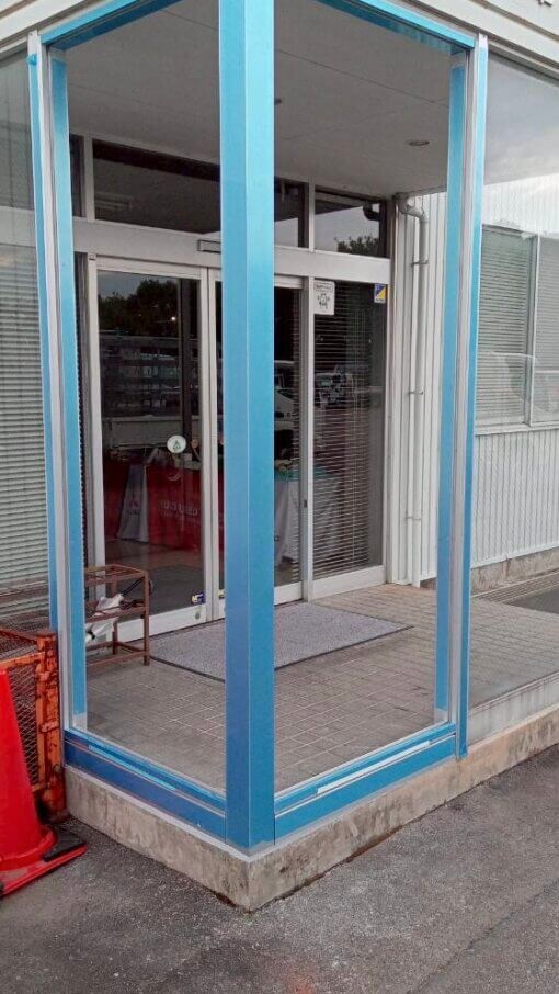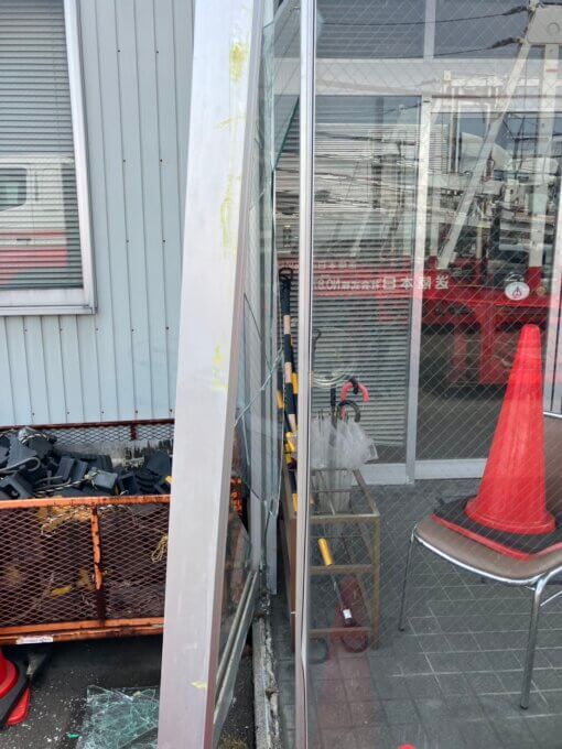 今回はお客様から車がぶつかりガラスとサッシ枠が壊れたので