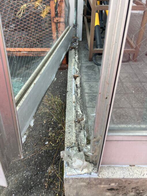 ガラスは割れており、サッシの枠も折れたり曲がっている状態でした。