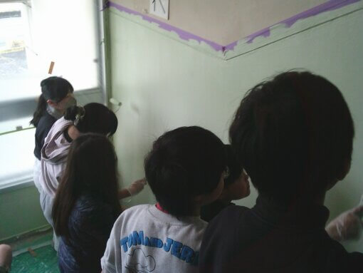 6年間お世話になった廊下の壁の塗装を行いました。