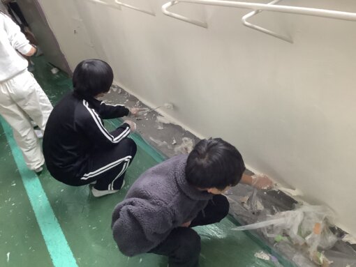 6年間お世話になった廊下の壁の塗装を行いました。