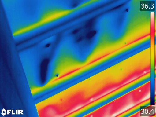 以前、雨天時に室内の天井を赤外線カメラでみると雨漏りしている様な反応が見られました。