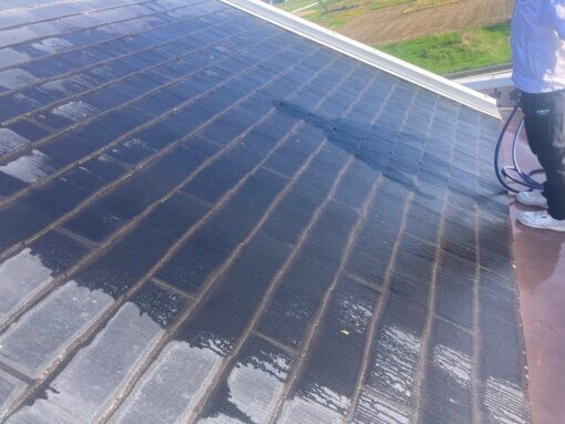 スレート瓦(カラーベスト)屋根を塗装する際は、縁切り作業が必要となりますので、注意が必要です。
