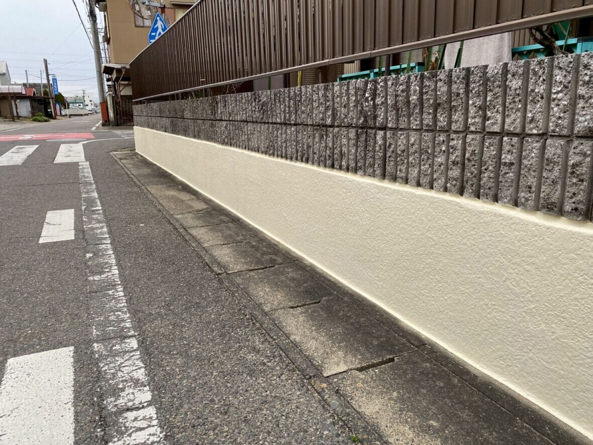 部分的な補修ですと、どうしても補修跡が目立ってしまう可能性がございましたので、今回は擁壁全体を塗り直しさせていただきました。
