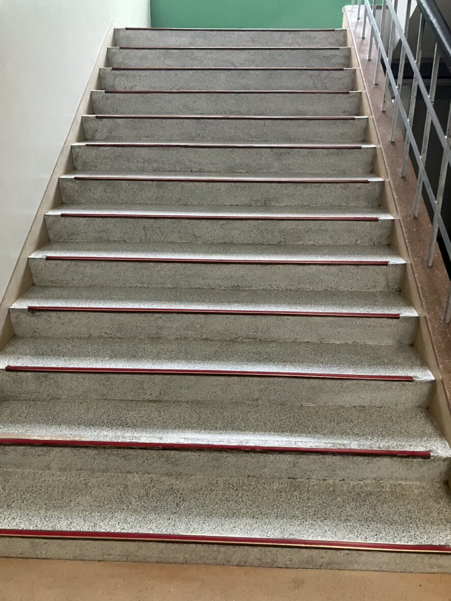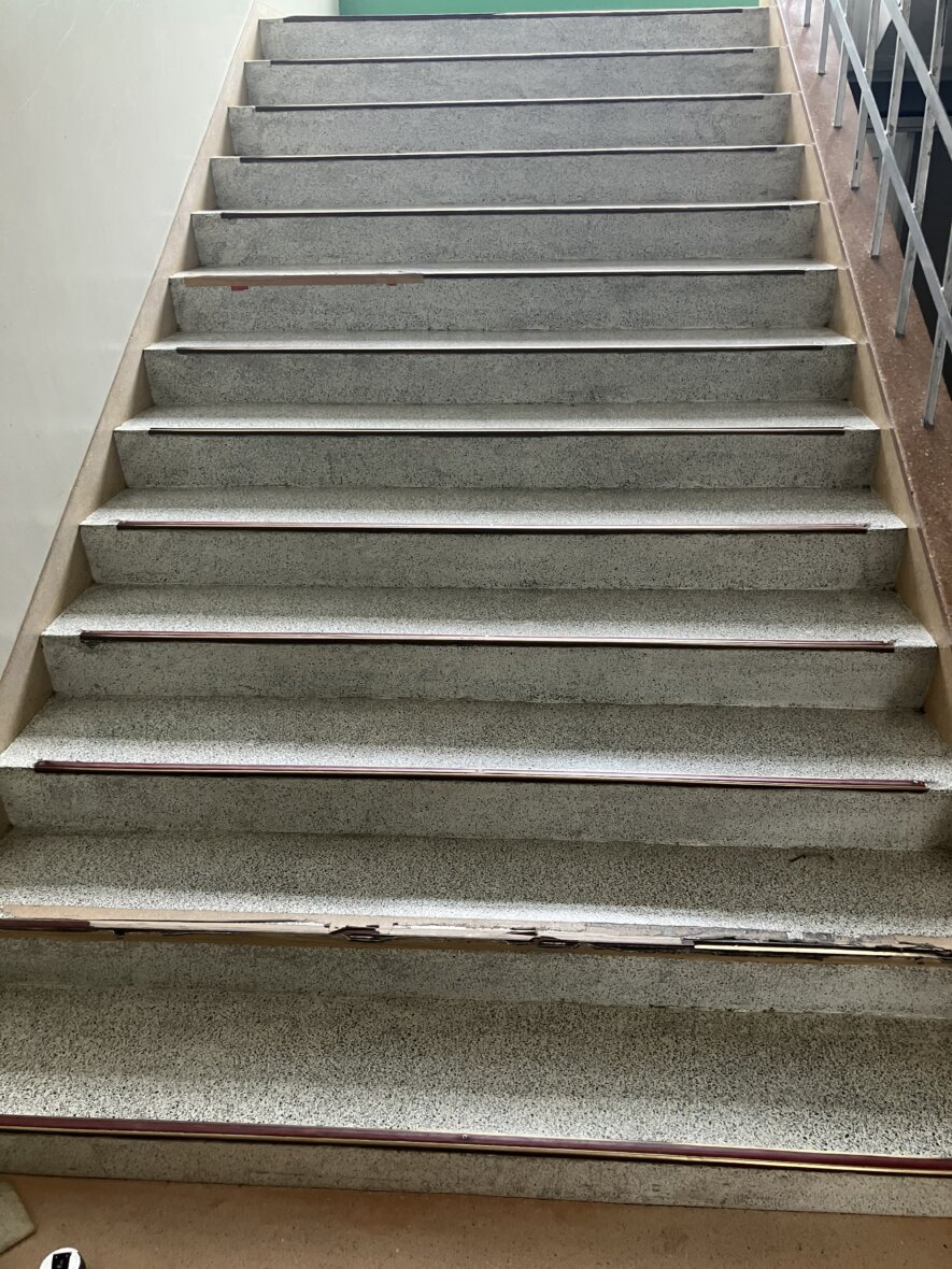 生徒さんもご利用される階段の滑り止めが、経年劣化により剥がれてしまっているとのことで、対応させていただきました。