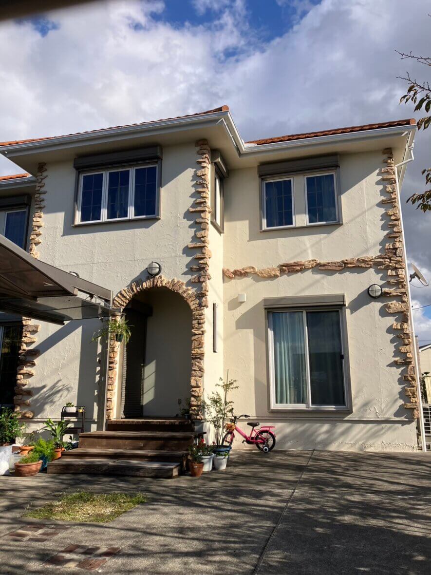 洋風なデザインのお住まいでしたが、外壁は清潔感のあるホワイト、屋根は明るいオレンジ系で塗装したことで洋風のかわいらしさと温かみをより際立たせた仕上がりになりました。