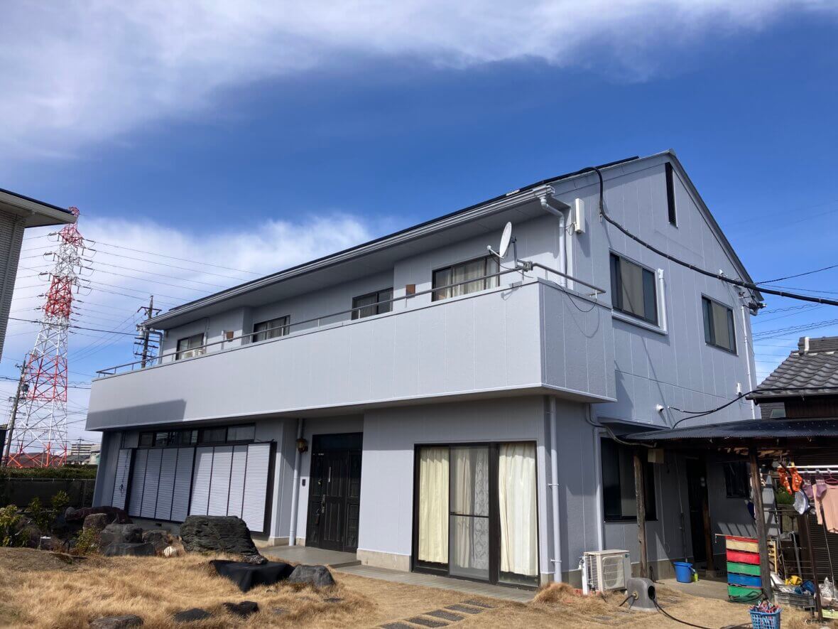 お打合せの際、色で悩まれておりましたが、耐久性重視で考えられていたこともあり屋根・外壁・付帯部ともに白系の色で統一した仕上がりになりました。