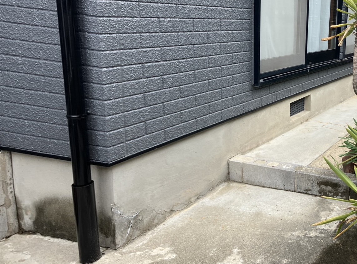 基礎につきましては、大きなひび割れや表面の剥がれが見受けられましたので、該当箇所を補修し、モルタルにて仕上げさせていただきました。